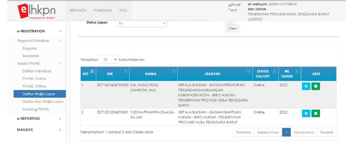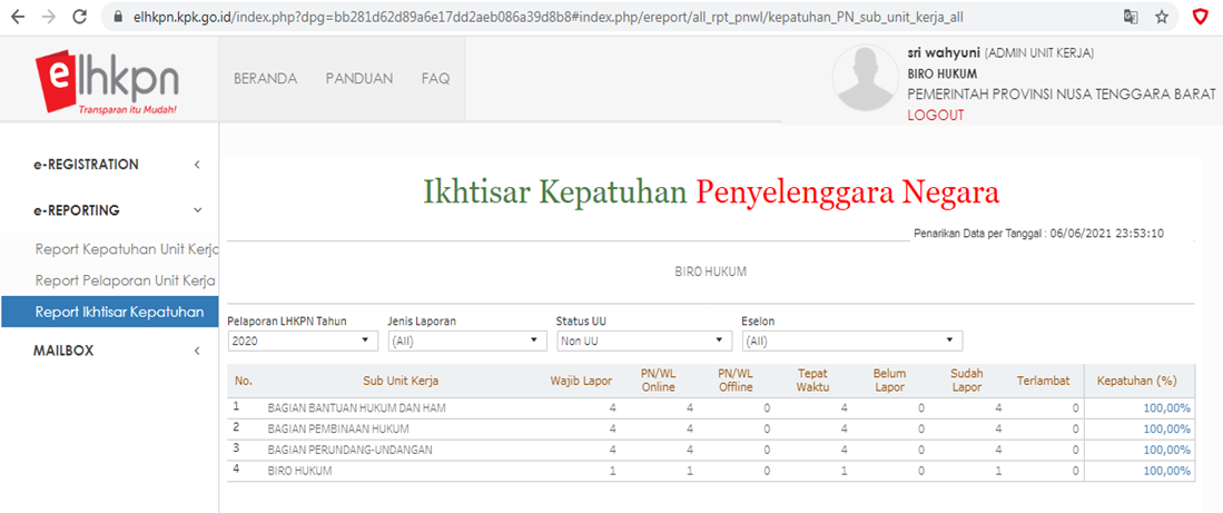 LHKPN Eselon III Biro Hukum :